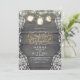 Madera de granero rústica y invitación a la boda de encaje floral blanca con encantados cordones y jarras de albañil llenas de luciérnagas de oro estrelladas. — Todos los elementos de diseño creados por Jinaiji