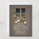 Invitaciones a cenas rústicas en el país con ramas de árbol, jarras de albañil, luces de cuerdas y viejas ventanas de granero.