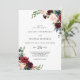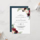 Esta deslumbrante invitación a una boda borgoña rústica de otoño es perfecta para un boda moderno. El diseño es de color burdeos, rojo, marino, azul y ondulante radiante y flores elegantes pintadas a mano, inspirando la belleza natural.