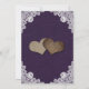 Estas románticas invitaciones de boda rústicas con corazones de burrega en un fondo de burrega y encaje adornado con luces de cuerdas son perfectas para invitar a sus invitados a su fiesta de bodas rústica morada de campo/granero.