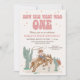 Rustic Pink Retro How The West Was One 1st Birthday Invitation Cute retro cómo occidente fue una invitación de primer cumpleaños para una niña de bebé con una cowgirl, gorra de cowgirl, paisaje del desierto occidental con cactus y un texto de estilo retro. Esta invitación de cumpleaños para chica con temática de cowgirl es ideal para una fiesta de cumpleaños de temática occidental.