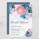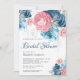 Invitación Rústico Rosa floral rosa azul turquesa ducha de no