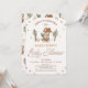 Invitación de Baby Shower occidental neutra de género Rústico Género Amarillo género Invitación a ducha de bebé con temática neutra de género vaquero con algunas botas de vaquero, gorra de vaquero, cactus, herradura, cuerda, texto estilo cuerda y un toque de un patrón de impresión de vaca. Esta invitación para el cumpleaños de una ducha de bebé es ideal para una ducha de bebé al oeste, sur o oeste.