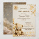 Fije el tono para una celebración acogedora y sentida con esta invitación a la ducha de bebé de osito de peluche. Rodeado de estrellas doradas y hojas de otoño, este diseño se inspiró en la calidez de la naturaleza y el asombro de la infancia. ¡Una manera atemporal de invitar a sus seres queridos a un día mágico!