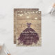 Tiara dorada, luces de cuerda, vestido de color burdeos, encaje rústico y diamantes sobre fondo de textura de madera. Hermosa invitación que se puede personalizar con tu nombre. Seleccione el botón "personalizar" para cambiar el estilo, color y tamaño del tipo de letra.