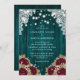 Invitación Rústico Verde azulado Boda floral de Borgoña