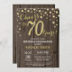 Invitación Rústico Wood Gold 70.º Diamante de cumpleaños
