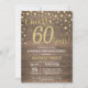 Sorpresa 60 cumpleaños invitación con fondo rústico de madera y Purpurina de oro. Retro Vintage de campo. Confetti de oro. Cumpleaños de adultos. Cumpleaños de hombres o mujeres.