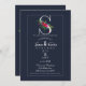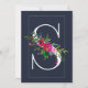 Invitación S Monograma Último Boda floral azul moderno inicia