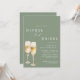 Sofisticadas y divertidas invitaciones para la cena de cumpleaños con un ilustracion acuarela de dos copas de champán. Fuente blanca en un verde silenciado. Se puede cambiar a cualquier edad; o eliminar la edad juntos y escribir el apellido en lugar de "__th cumpleaños".