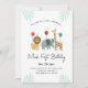 Cute and fun kid's safari animals theme birthday party invitation featuring an illustration of safari animals. There is a lion, a elephant, a giraffe and greenery.