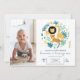 Safari Blue Llamando a todos los animales Fiestas Invitación al primer cumpleaños Animación Safari animales o animales fiestas temática invitación al primer cumpleaños para un bebé con tres lindos animales de la selva y una corona de flores y hojas. Esta convocatoria a todos los animales fiestas para su primer cumpleaños también incluye un falso número de purpurina de oro y una foto en un lado.