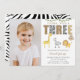 ¡Es joven, salvaje y TRES! Invitaciones a tarjetas de fotos del tercer cumpleaños con temática de Safari africana para celebrar el día especial de tu niñito.