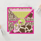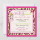 Mono salvaje y divertido colgando de la vid de la jungla y un pacificador salvaje con huellas de cebra, jirafa, leopardo y chita con cintas guarnecido de encaje con aspecto 3D invitan a la ducha bebé. Los colores son rosados, verdes y marrones.