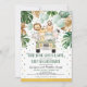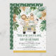 Beep, Honk, Grita y Ola! Impresionante invitación a bañarse en una ducha de bebé con vegetación tropical verde y dorada y un grupo de bonitos animales de la jungla