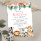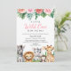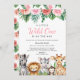 Invitación a la ducha de bebé Safari Jungle | ¡El tema del Safari Tropical Baby Shower celebra a tu pequeño y salvaje con esta invitación a ducha de bebé Safari Jungle! Con adorables animales de la selva, exuberante vegetación tropical y suaves acentos rosa, esta invitación le aporta un ambiente lúdico y elegante a su celebración. Perfecto para duchas infantiles tradicionales, fiestas de jardines tropicales, o temática silvestre de un cumpleaños. Personalice fácilmente para crear un dulce evento único.