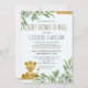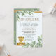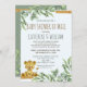 Esta linda ducha de bebé con tema de safari en la jungla por correo es tan dulce. Seguro que hará sonreír a tus amigos y familiares cuando los invites a tu ducha de bebé por correo para un niño o niña. Este diseño neutro de género presenta un león bebé dulce enmarcado por hojas botánicas de eucalipto y guarnecido dorado.