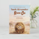 Safari theme first birthday invitation featuring an original character from the Hystrix Little Thoughts® collection. This design features Zuberi: a charming fluffy leopard character, whose name means “strong” and “powerful,” adding a meaningful and symbolic touch to this “Roaring One” birthday. Set in a soft watercolor African safari landscape with warm earth tones, gentle hills, and acacia trees, this invitation creates a sweet and adventurous atmosphere, perfect for a wild one safari party or baby boy first birthday.