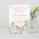 Invitación Safari Zoo Rosa Floral Dorado Niña 3er Cumpleaños