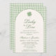The classic arch layout and graceful script calligraphy create a romantic, old-world feel, while the green diamond pattern adds visual interest and a subtle nod to traditional Irish and European design. Perfect for St. Patrick’s Day engagement parties, March celebrations, Irish pub gatherings, cocktail parties, or green-themed engagement events, this invitation feels joyful, stylish, and thoughtfully designed.