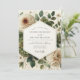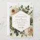 Embrace classic elegance with this stunning botanical composition. Soft, creamy white dahlias and delicate blossoms bloom amidst a lush tapestry of sage green leaves. The detailed, painterly quality of the artwork creates a romantic and sophisticated atmosphere for your nuptials. This design is perfect for a timeless, nature-inspired union.