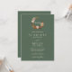 Esta elegante y rústica invitación a la boda incluye naranja quemado con acuarela pintada a mano y hojas de terracota, dahlias crema y beige, y hermosos rosas de color rojizo perfectos para un boda otoño o otoño. La parte posterior de la invitación es verde salvia para coordinar con el frente. Este diseño forma parte de la colección Autumn Romance.