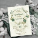 Invitación sage flor blanca verde ducha de novia botánica