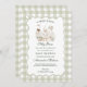 Celebrate the sweetest little one on the way with this whimsical sage gingham design featuring a charming watercolor silly goose trio. The soft green palette, scalloped frame, and hand-painted characters create a warm, storybook feel perfect for a cozy, gender-neutral baby shower. Personalize the text to match your event details and bring a touch of gentle farmhouse charm to your celebration.