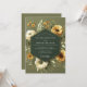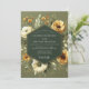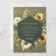 An earthy and elegant design featuring a beautiful botanical arrangement. Delicate cream anemones and vibrant goldenrod-hued wildflowers create a stunning contrast against a muted sage green backdrop. Sprigs of silvery-green foliage are artfully placed, evoking the feeling of a serene, sun-dappled meadow for a sophisticated, natural affair.