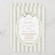 Featuring watercolor sage stripes, a leafy oval frame, and a delicate ribbon bow, this design is calm, minimalist, and beautifully gender-neutral.