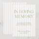 Este cartel ofrece una manera sincera de honrar y recordar a sus seres queridos en su día de boda. Diseñado en una paleta blanca y verde salado con refinada tipografía de la sierra, combina con gusto los temas modernos, del jardín y de boda clásico. Personalizable completo — ajustar la redacción para crear un tributo personal que refleje su celebración. Coordina con la colección de invitaciones a bodas "Iris" completa: haga clic en el vínculo de colección de esta página para buscar elementos coincidentes como menús, gráficos de asientos, signos de bienvenida y más. ・ Se crearon maquetas para este diseño usando Midtrip AI.