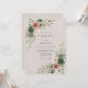 This romantic design features a soft color palette of sage green and dusty rose set against a warm neutral backdrop. Lush bouquets of watercolor roses and delicate eucalyptus foliage create an atmosphere of timeless elegance. The artistic floral elements provide a graceful botanical aesthetic perfect for a refined spring or summer event.