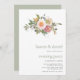 Invitación a la fiesta Boda de Sage Green Floral Bouquet QR. Un diseño moderno y elegante con un ramo floral verde sabio y polvoriento rosa. Personalice fácilmente con sus detalles. Agregue un código QR en la parte posterior para que sus huéspedes puedan escanear RSVP y ver más detalles. Cambie el texto y los colores de fondo si desea coincidir con su propio tema de color boda mediante la opción Editar más adelante.