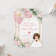 Invitación Sage Green Floral Pink Girl First Holy Communion