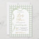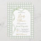 Invitación de Baby Shower Sage Green Gingham y Bow, invitación neutral de Baby Shower de la cinta verde sabio