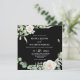 Esta sabrosa invitación al matrimonio cuadrado negro de eucalipto verde follaje es ideal para un boda boho. El diseño es exquisito y rústico, con un toque de bosque bohemio moderno, con hilo acuático y eucalipto.