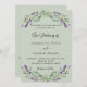 Un fondo verde salado decorado con flores de lavanda y vegetación eucaliptica. Personalice y sus nombres y detalles. Atrás: agregue su URL web a su sitio web boda para RSVP y más detalles.