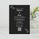 Invitación Sage Green Leaf Black White Script Boda de código