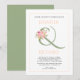 Elegante sabio ampersand verde, nombres de melocotones y rosas rosas rosas virtuales invitación a una boda. Muestra un elegante ampersand en verde salvia, el texto "EL AMOR NO ES CANCELADO", un ramo de rosas rosadas, sus nombres en melocotón y texto. La parte posterior es de color verde sabio.
