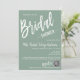 Crea una ducha de novias minimalista y personalizada para la futura novia. Esta invitación a la ducha de novia incluye un amplio y hermoso guión de caligrafía escrito sobre un fondo verde sabio. Puede personalizar fácilmente con su propio texto y personalizar a su gusto. Tenga en cuenta: "Bridal" y "Shower" y "Registry" y "at-at-" no pueden editarse obras de arte gráficas y otros elementos.
