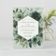 Embrace a sophisticated and elegant mood with this stunning botanical design. A lush arrangement of monochromatic green florals, including soft roses and striking anemones, creates a harmonious composition. The palette of sage, olive, and deep forest green offers a uniquely romantic and moody atmosphere for your special day's stationery.
