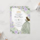 Invitación Sage Green Purple Floral Princesa Gown Quinceañera