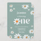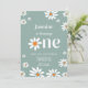 Invitación Sage Green Retro Groovy Daisy Florals 1er cumpleañ