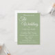 Estilo sencillo, invitación a la boda que incluye un fondo de color verde sabio y moderno junto con los futuros nombres de novias y novios y fecha de evento, hora, ubicación y registro impresos en escritura blanca y estilizada. Personaliza tu invitación de boda reemplazando la información con la tuya. Seleccione el estilo y la cantidad del papel de invitación. Diseñado para coordinar con nuestra colección Sage Green Simple Style Boda.