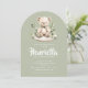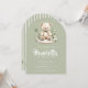 Announce your upcoming baby shower with this beautiful arch-shaped invitation featuring a classic sage green and white stripe pattern. Adorned with a delicate garland of watercolor eucalyptus leaves and a sweet cream ribbon bow at the bottom, this design offers a touch of natural elegance. The arched silhouette adds a modern and stylish flair to your baby celebration. This invitation is perfect for parents-to-be who appreciate a clean, sophisticated aesthetic with a hint of botanical charm. It’s a wonderful way to invite loved ones to share in your joy.