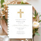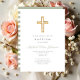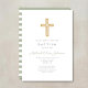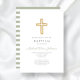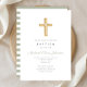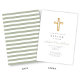 Invitación Sage Green Stripes Religioso Cross Baptism