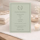 Invitación Sage green taupe wreath monogram simple wedding