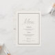Perfect for reception tables, formal dinners, and outdoor garden celebrations, this menu complements sage green, ivory, greige, and neutral wedding color palettes. The understated floral backing adds depth and sophistication while keeping the front clean, readable, and print-friendly.