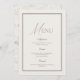 This elegant wedding menu features a soft ivory front with refined typography and a delicate double-line frame, paired with a subtle sage green floral pattern on the reverse side. Inspired by romantic garden weddings, this design blends timeless minimalism with vintage botanical charm.