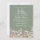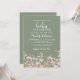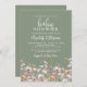 Muted Pastel Boho Botanical Garden Baby Shower Invitation. Celebrate the mom-to-be with this elegant boho design featuring a sage green background on both the front and back for a calm, earthy, and timeless look that works beautifully from spring through autumn. At the top, “Baby Shower” is displayed in a refined mix of script and serif typography in crisp white for an elegant yet modern feel.